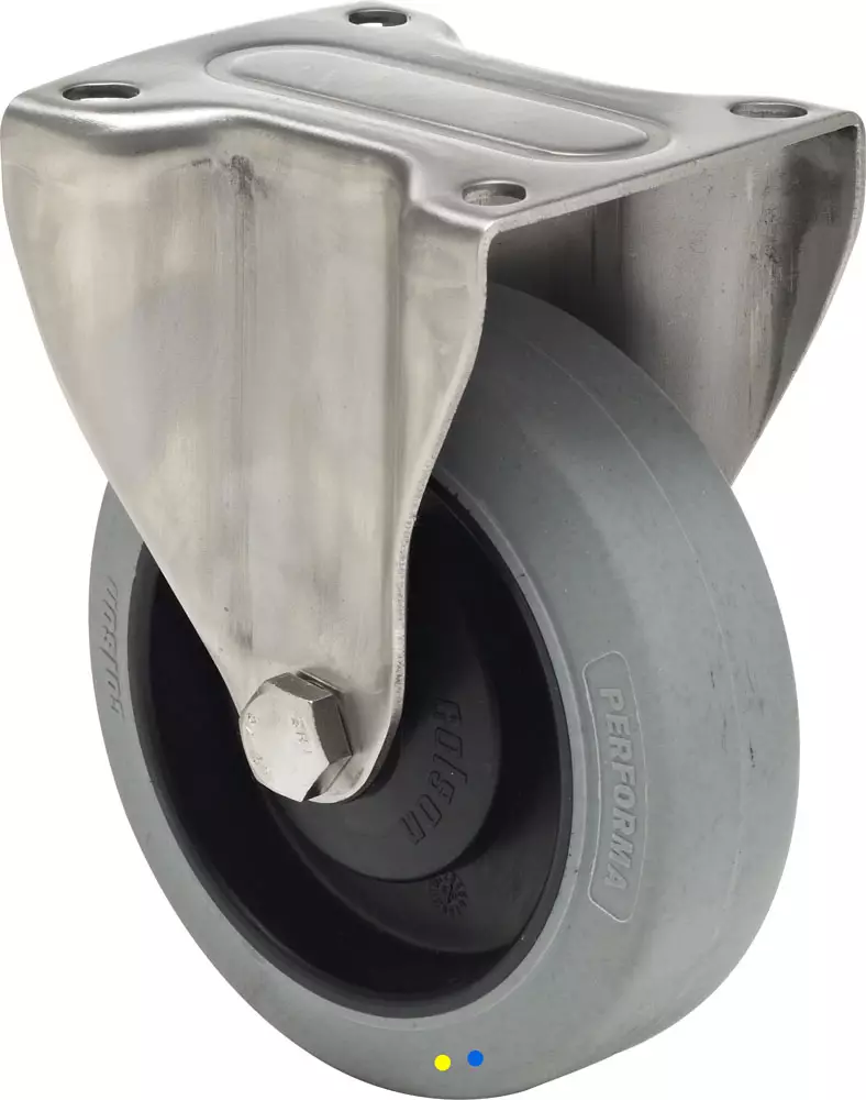 Sujuvan ja kevyen liikkeen takaa pyörän ytimessä oleva ruostumattomasta teräksestä valmistettu kuulalaakeri. Pehmeä Performa-kumirengas tekee pyörästä erittäin hiljaisen, vaimentaa tehokkaasti iskuja ja on täysin jälkiä jättämätön, suojellen lattiapintoja. Kiintopyörän malli antaa vaunulle vakaan ja suoran kulkusuunnan.