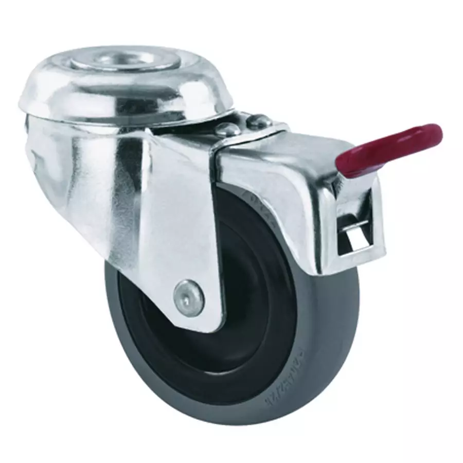 Pyörässä on tehokas kokonaisjarru, joka lukitsee polkaisulla turvallisesti sekä pyörän pyörimisen että kääntöliikkeen. Asennus on nopeaa ja helppoa yhdellä M10-pultilla (reikä Ø 10,2 mm).