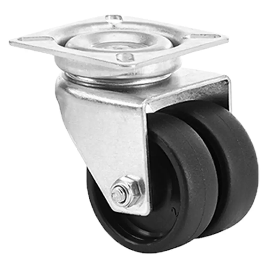Sen kaksoispyörärakenne tekee siitä vakaamman ja helpommin ohjattavan kuin perinteinen yksittäinen pyörä, ja se kääntyy "paikallaan" pienemmällä vaivalla. Matalan 73 mm kokonaiskorkeutensa ansiosta se on ihanteellinen ratkaisu huonekalujen, myyntitelineiden, tarjoiluvaunujen ja erilaisten laitteiden alle.