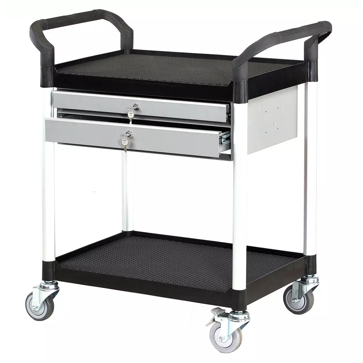 Kestävä Rakenne Ammattikäyttöön: Vankka alumiinirunko ja iskunkestävät, lasikuituvahvisteiset polypropeenitasot ja -laatikot takaavat pitkän käyttöiän ja kestävät kovaa kulutusta vaativissakin olosuhteissa. Kokonaiskantavuus on huikeat 250 kg!