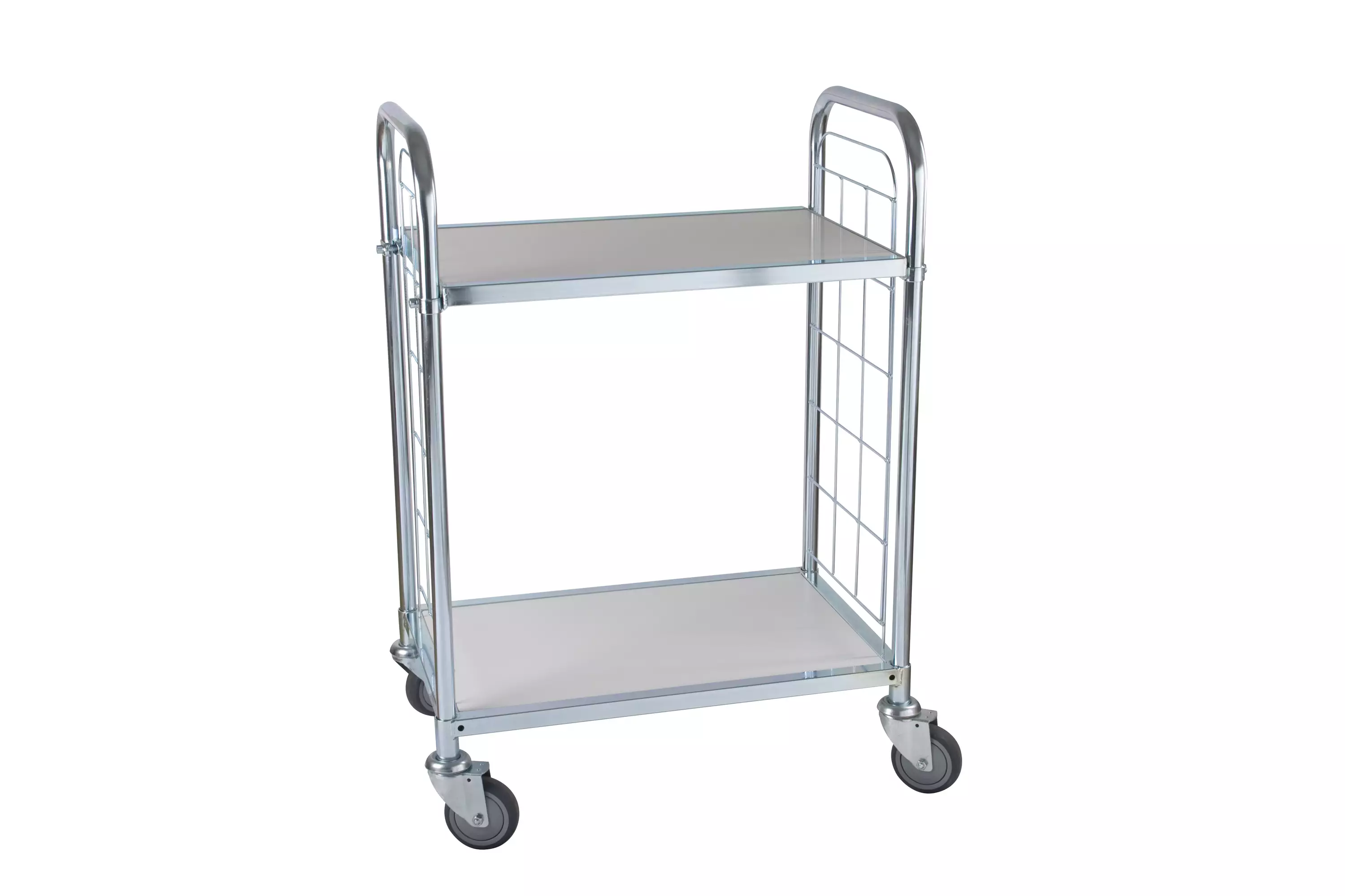 Helppo ja Hiljainen Liikuteltavuus: Laadukkaat umpikumirenkaat (Ø 100 mm) ja neulalaakerointi pyörissä tekevät vaunun liikuttelusta kevyttä ja ergonomista. Vakiokokoonpanossa tyypillisesti 2 kiinteää ja 2 kääntyvää pyörää (tai 4 kääntyvää, 2 jarrulla – räätälöitävissä).
