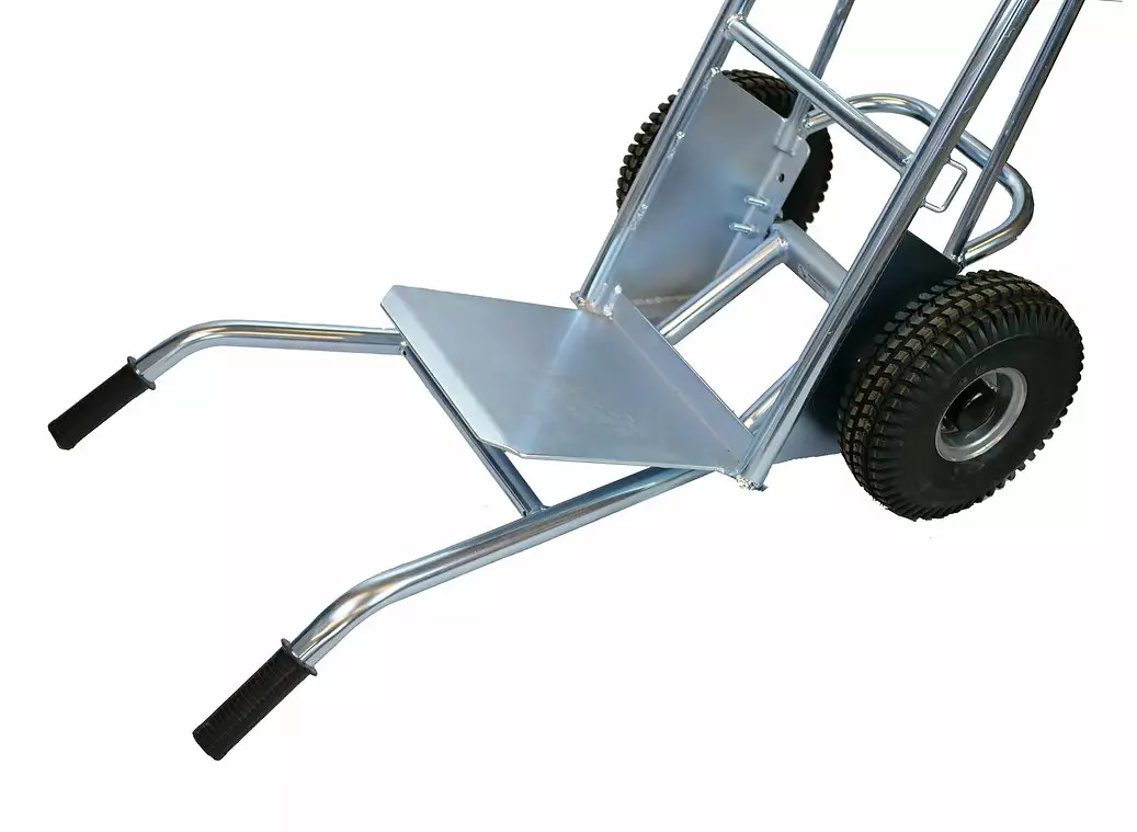 Turvallisuus Portaissa ja Esteillä: Kahvat tarjoavat apukantajalle tukevan ja varman otteen kärryn akselista, parantaen merkittävästi hallintaa ja turvallisuutta kannettaessa raskasta pumppua portaissa, kynnysten yli tai erittäin epätasaisessa maastossa.
