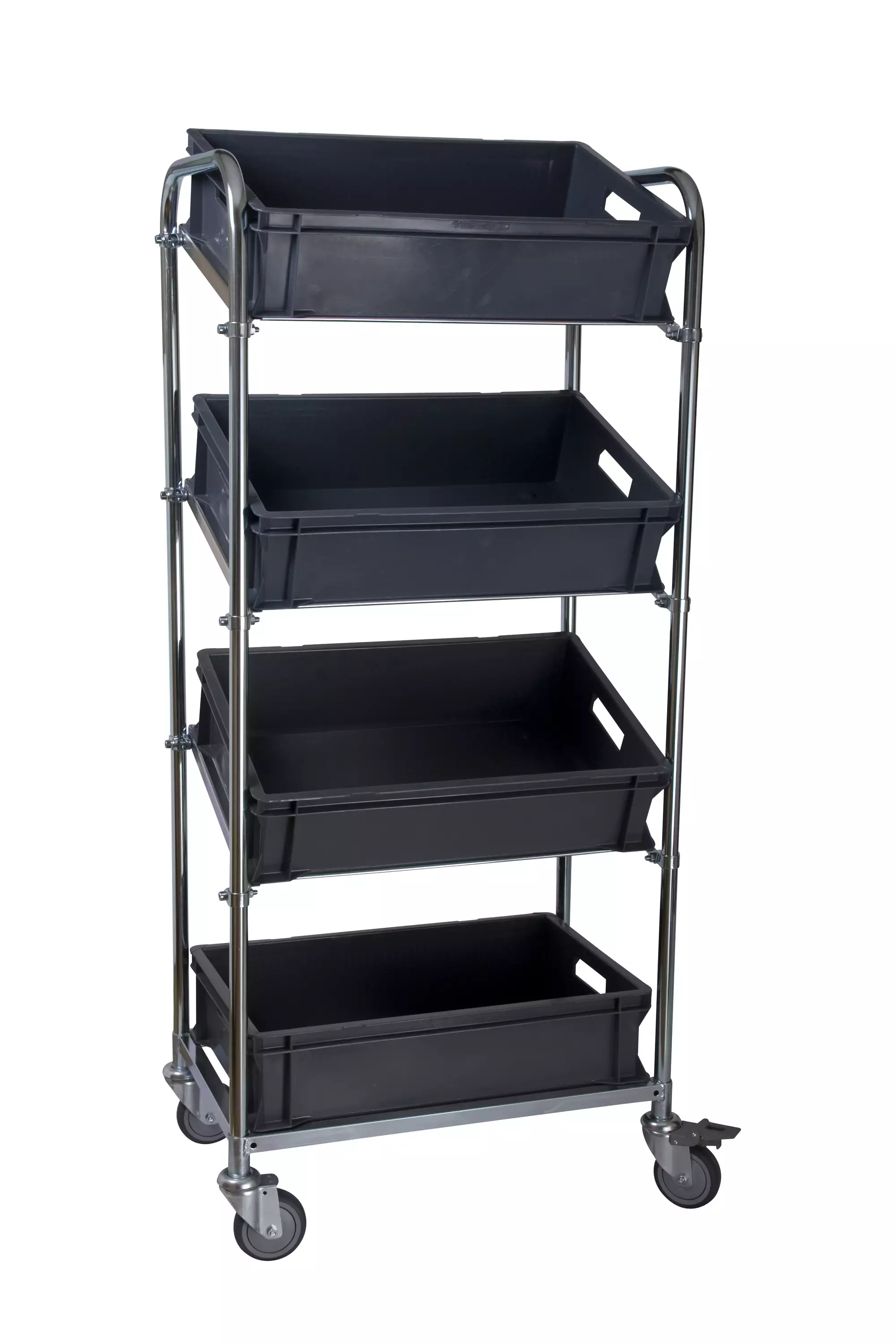 Modulaarinen ja Joustava: Vaunussa on neljä tilavaa (600x400x150 mm) ja irrotettavaa muovilaatikkoa. Voit helposti järjestellä laatikot tai käyttää vaunua vain osalla laatikoista. Tasojen korkeutta ja väliä voi säätää tarpeen mukaan, mukautuen erikokoisiin tavaroihin.