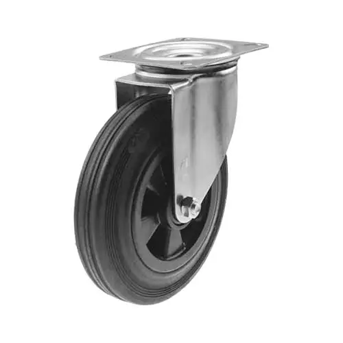 Vahva, 2.5 mm teräksestä valmistettu haarukka ja standardikokoinen 140x110 mm laippa (105x80 mm reikäväli) tekevät asennuksesta vakaan ja helpon. Tämä pyörä on testattu EN 12532 -standardin mukaisesti, mikä takaa sen laadun ja turvallisuuden ammattikäytössä.